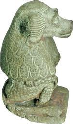 | Keywords: Egyptian - Squatting Thoth Baboon - Walters 542143 - Right.jpg The main cult center of Thoth the god of wisdom was at Hermopolis in Middle Egypt The animals sacred to this god were the baboon and the ibis and a gigantic cemetery for them was established nearby in Tuna el-Gebel Small bronze figurines such as this one could surmount a coffin and be placed in an animal cemetery or could be donated to the Thoth temple While ibis figures and mummies have been found in many places in Egypt baboon mummies are rarer and most of them come from Tuna el-Gebel between 664 332 BC Late Period bronze cm 4 81 2 05 2 accession number 54 2143 38988 Henry Walters Baltimore date and mode of acquisition unknown Walters Art Museum Henry Walters Acquired by Henry Walters Mummified The Walters Art Museum Baltimore 2008-2013 place of origin Egypt Walters Art Museum license Ancient Egyptian statuettes in the Walters Art Museum Squatting Thoth Baboon - Walters 542143 Media contributed by the Walters Art Museum needs category review Statues of Thoth baboon Thoth amulets |
