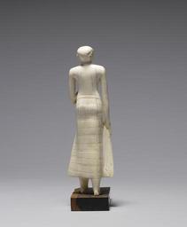 | Keywords: Egyptian - Standing Figure of a Male Dignitary - Walters 71509 - Back.jpg Sadly this small figure of a standing official has lost its original base which would have provided information on his identity but the outstanding quality of its workmanship and the material used indicate that it was made for an individual of very high status This sophisticated small figure displays several features typical of Middle Kingdom sculpture prominent eyes; the significant gesture of his left hand placed upon his right breast indicating an attitude of respect; elongated arms and hands; and the ankle-length shendyt The slight fleshiness of the body hint at the owner's desire to be seen as successful and therefore well fed ca 1970 BC Middle Kingdom carved elephant ivory cm 21 2 6 8 5 3 accession number 71 509 19866 Maurice Nahman Cairo and Paris date and mode of acquisition unknown Henry Walters city Baltimore Walters Art Museum Henry Walters Acquired by Henry Walters 1930 place of origin Asyut Egypt Walters Art Museum license Ancient Egyptian statues in the Walters Art Museum Media contributed by the Walters Art Museum needs category review Ancient Egyptian art from Asyut |
