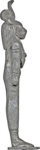 | Keywords: Egyptian - Standing Wadjet - Walters 571421 - Right.jpg The ancient Egyptians donated figures of their gods for use in temple rituals; smaller images served as amulets to ensure divine protection Goddesses in particular were viewed as protective deities From earliest times Egyptians venerated a wide circle of feline-headed female deities such as Sekhmet Tefnut Wadjet and Bastet This small silver figure represents Wadjet She is standing wearing a long female garment amulets and bracelets At the top of her head is a large erected uraeus cobra serpent The goddess holds a ritual instrument in front of her body with her left hand; it is a usekh-collar with a lioness-head also called an Aegis which has a protective function between 1070 730 BC Third Intermediate silver cm 9 26 2 66 2 15 accession number 57 1421 34004 Henry Walters Baltimore date and mode of acquisition unknown Walters Art Museum Henry Walters Acquired by Henry Walters Jewelry - Ancient to Modern The Walters Art Gallery Baltimore 1979-1980 Daily Magic in Ancient Egypt The Walters Art Museum Baltimore 2006-2007 place of origin Egypt Walters Art Museum license Ancient Egyptian amulets in the Walters Art Museum Wadjet Media contributed by the Walters Art Museum needs category review |