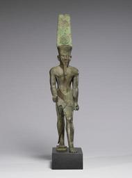 | Keywords: Egyptian - Statue of Amun-Re - Walters 54413.jpg Amun was one of the most important deities in ancient Egypt He was worshiped at Thebes in southern Egypt from the beginning of the Middle Kingdom 2046 BC The Egyptians considered him to be King of the Gods and divine father of the pharaoh He was also worshiped in Nubia and was the principal god of the Kushite empire in present-day Sudan The style of the figure clarifies that it was made when the Kushites ruled both Egypt and Nubia The god wears his characteristic feather-crown combined with the solar disk of the sun-god Re The attributes he would originally have held were probably the symbols for prosperity was and life ankh ca 680 640 BC Late Period bronze alloy remains of gilding and glass inlay cm 47 6 10 2 13 7 accession number 54 413 32904 Dikran Kelekian New York and Paris Henry Walters city Baltimore Walters Art Museum Henry Walters Acquired by Henry Walters 1911 place of origin Karnak Egypt Walters Art Museum license Ancient Egyptian statues in the Walters Art Museum Statues of the Egyptian late period Statues of Amun-Ra |
