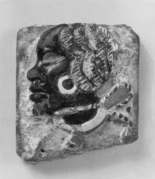 | Keywords: Egyptian - Tile - Captive Nubian Chieftain - Walters 48409.jpg This man has the large earring and tightly curled hairstyle typical of Egyptian depictions of Nubians When complete the tile showed the chieftain as a bound prisoner Such prisoner tiles could have decorated the bases of walls of royal buildings so the enemies of the pharaoh would be quite literally at his feet ca 1300 1150 BC New Kingdom faience with polychrome glaze cm 7 8 7 2 4 accession number 48 409 18115 Dikran Kelekian Paris and New York Henry Walters city Baltimore Walters Art Museum Henry Walters Acquired by Henry Walters 1929 place of origin Medinet Habu present-day Luxor Egypt Walters Art Museum license Ancient Egyptian reliefs in the Walters Art Museum Media contributed by the Walters Art Museum needs category review POWs in Ancient Egypt |