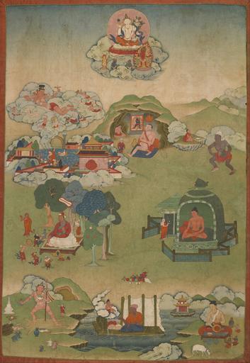 | Keywords: Eight Mahasiddhas - Google Art Project.jpg This is the last painting of an eleven-painting set from Palpung monastery and dedicated to The Eighty-four Great Tantric Adepts Mahasiddhas Especially interesting is the figure of the great adept Putalipa at top center seated in a cave and gazing at an image of the meditational deity Samvara The scene offers a view of a tantric Buddhist icon in use Above in the sky are the white bodhisattva Samantabhadra and below him small red wrathful figure Cakhavartin The other figures can be identified as the bodhisattva Samantabhadra; Darikapa; Putalipa; Upanaha; Kokilipa; Anangapa; Lakshmikara; Samudra; Vyalipa Eastern Tibet 464096 Unknown /collection/rubin-museum-of-art/artwork/eight-mahasiddhas-unknown/463166/ author /collection/rubin-museum-of-art/ Rubin Museum of Art 342005 http //www rmanyc org/ 12/8/2011 11 22 02 PM /collection/rubin-museum-of-art/artwork/eight-mahasiddhas-unknown/463166/ 1701 1 18th century 1 Mineral pigments on cloth 463166 False 1800 31 18th century 12 Complete 3/24/2012 2 38 40 AM C2005 22 1 Rubin Museum of Art C2005 22 1 Painting 1700 1810 Eastern Tibet 18th century False 0 689453125 Object eight-mahasiddhas-unknown Eight Mahasiddhas e - Freer Gallery of Art and Arthur M Sackler Gallery Smithsonian Institution Washington D C Lama Patron Artist The Great Situ Panchen 03/13/10 - 07/18/10 - RMA Patron and Painter Situ Panchen and the Revival of the Encampment Style 02/06/09 - 08/17/09 Mineral pigments on cloth special url_id JgHgByAVb1Nv_Q PD-old-100 Google Art Project works by unknown artist Paintings of the Buddha Tibetan art in the Rubin Museum of Art 18th-century paintings from Tibet |