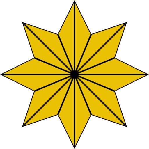 | Keywords: Eight-pointed star 16 radial lines.svg Gold eight-pointed star with 16 rib lines drawn from the center to the vertices Vector equivalent to File Simon dEscorsi seal tif generated from the following vector PostScript source code <pre> 300 396 translate 2 setlinewidth/A 7442 sqrt def/B 72 22 5 cos mul def/C 72 22 5 sin mul def/D lineto def/E dup neg 3 2 roll dup neg exch 4 1 roll exch moveto D stroke def 0 122 moveto C B D A A D B C D 122 0 D B C neg D A A neg D C B neg D 0 -122 D C neg B neg D A neg A neg D B neg C neg D -122 0 D B neg C D A neg A D C neg B D closepath gsave stroke grestore 1 9 0 setrgbcolor fill 0 setgray 0 122 E 122 0 E A A E A neg A E 2 setlinecap B C E C B E B neg C E C neg B E showpage EOF</pre> HandSVG Eight rays Images with PostScript source code |