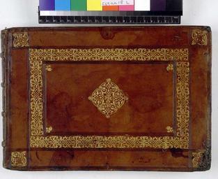 | Keywords: Ein gute Ordnung und kurtze Unterricht der furnemsten Grunde aus denen die Jungen zierlichs schreybens begirlich, mit besonderer Kunst und Behendigkeyt unterricht und geubt mogen werden. - Lower cover (c69aa18).jpg Style Centrepiece; Caption Lower cover; Colour Brown; Edge Unspecified exhibition history Decorative Technique Tooled in blind Tooled in gold; Cover Material Calf Traces of 4 pairs of ties A Nuremberg binding bound in the Italian style The Romer family of Nuremberg had the same binding on a book containing their coat of arms Ink ms note; Sannsen Lebzelters Kunstbuch Anno 1549 See ARA Hobson Some sixteenth century buyers of books in Rome and elsewhere in Humanistica Lovaniensia vol XXXIVA 1985 pl VI Hobson has discovered other examples of this binders work not for the Romer family including Syriac New Testatment 1555 ed Johann Albrecht Widmanstetter Zurich Zentralbibliothek with a Nurmeberg provenance; Petrirch Le rime Venice Valgrisi 1549 Milan Biblioteca Trivulziana Petr 74; Cristoforo di Messsi Sbugo Libro novo nel qual s'insegna a' far d'ogni sorte di vivanda Venice Giovanni dalla Chiesa 1552; possibly Alciati Omnia emblemata Antwerp 1581 Brussels Bibliotheca Wittcokiana lettered A H N and dated 1581 Ilse Schunke identifies these Nuremberg bindings as by Christoph Heurlein but on what proof is not known and identifies 3 bndings from the Vatican Library as being similarly by him RI ii 960 illustrated from a drawing in Palatina I p133 Pal VI 184 Jo Habermann Trostbuchlein Nuremberg 1582 and Pal VI 206 Savonarola Des Sunders Spiegel Nuremberg 1556 which Mr Hobson thinks sound like Romer Books object history Text 1538; Nuremberg; Unspecified object type Cc-zero place of creation Binding Germany place of discovery Unspecified British Library image http //www bl uk/catalogues/bookbindings/LargeImage aspx RecordId 020-000007880 ImageId ImageId 43545 Copyright BL Ein gute Ordnung und kurtze Unterricht der furnemsten Grunde aus denen die Jungen zierlichs schreybens begirlich mit besonderer Kunst und Behendigkeyt unterricht und geubt mogen werden Uploaded with GWToolset Ein gute Ordnung und kurtze Unterricht der furnemsten Grunde aus denen die Jungen zierlichs schreybens begirlich mit besonderer Kunst und Behendigkeyt unterricht und geubt mogen werden - Lower cover c69aa18 http //www webarchive org uk/bldatasets/bindings/8393_3 jpg Bookbinding 16th-century bookbinding British Library Bookbindings |