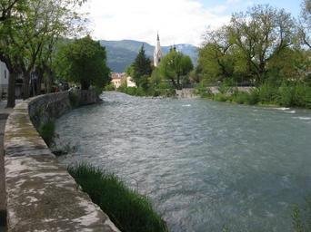 Keywords: Eisack bei Brixen.JPG de Der Eisack bei Brixen im Hintergrund der Weiße Turm der Pfarrkirche St Michael 2013-05-08 09 46 15 own Plentn cc-zero Uploaded with UploadWizard Eisack Brixen