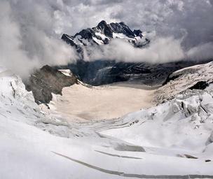 Keywords: Eismeer2.jpg en View of Schreckhorn from Eismeer Switzerland Own Jackph 06 08 2005 Mountains in the canton of Bern Snow in Switzerland