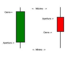Keywords: Ejemplo Velas Principal.jpg Pequeño ejemplo orientativo de un gráfico de velas 2006-08-17 own assumed Guifergon~commonswiki Candlestick charts Scheme of candlestick charts