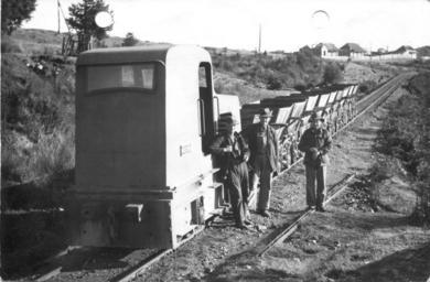 Keywords: train railway tasmania blackandwhite monochrome outdoor black and white The International powered locomotive built by Allport's in Hobart for the Mount Bischoff mine at Warattah. Ted Lidster collection The International powered locomotive built by Allport's in Hobart for the Mount Bischoff mine at Warattah. Ted Lidster collection