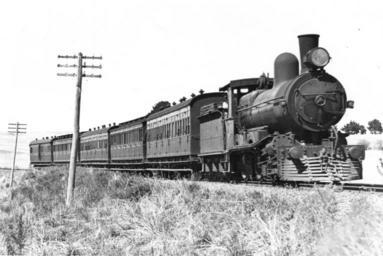 | Keywords: train railway locomotive steam narrow gauge tasmania blackandwhite monochrome outdoor vehicle railroad black and white An A class on a passenger train. TGR photo 4T37. Ted Lidster collection An A class on a passenger train. TGR photo 4T37. Ted Lidster collection |