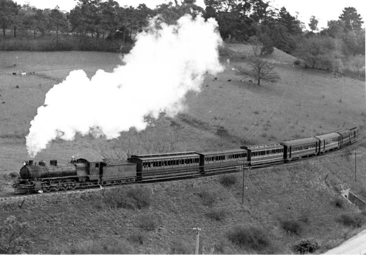 | Keywords: steam locomotive train railway tasmania narrow gauge blackandwhite monochrome outdoor black and white A Q (Q10 perhaps?) on a passenger train at St Leonards. TGR photo 4T10. Ted Lidster collection A Q (Q10 perhaps?) on a passenger train at St Leonards. TGR photo 4T10. Ted Lidster collection |