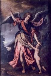 | Keywords: El Ángel de la Guarda (Museo de Santa Cruz de Toledo).jpg La obra representa al Ángel de la Guarda acompañando a un niño al que protege 1638 oil on canvas Size cm 112 170 Institution Museo de Santa Cruz Toledo http //ceres mcu es/pages/Main accession number DO1434 http //ceres mcu es/pages/Main PD-old-100 Guardian angels paintings Cristóbal Ramírez 17th-century paintings in the Museo de Santa Cruz Toledo 1638 paintings in Spain | ||||