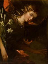 | Keywords: El arcángel San Gabriel, de José Antolínez (Museo Cerralbo, Madrid).jpg La obra representa al Arcángel San Gabriel y formó parte de una Anunciación de la que se conserva un fragmento que representa a la Virgen María también en el Museo Cerralbo circa 1626 1675 oil on canvas Size cm 61 80 Institution Museo Cerralbo http //ceres mcu es/pages/Main accession number 04625 http //ceres mcu es/pages/Main PD-old-100 Paintings of Saint Gabriel in Spain 17th-century paintings of Saint Gabriel Paintings by José Antolínez 17th-century paintings in the Museo Cerralbo |