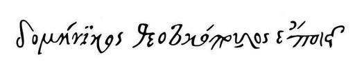 | Keywords: El Greco autograph.svg autograph of the painter El Greco Firma de El Greco Dice δομήνϊκος Î¸ÎµÎ¿Ï„Î¿ÎºÏŒÏ Î¿Ï…Î»Î¿Ï‚ ÎµÏ Î¿Î¯ÎµÎ¹ doménikos theotokópoulos epoÃei «Doménikos Theotokópoulos lo hizo» El_Greco_autograph png 2011-10-04 16 50 UTC El_Greco_autograph png El Greco derivative work Mr Ajedrez talk Vector graphic Mr Ajedrez El_Greco_autograph png PD-old-100 Original upload log This image is a derivative work of the following images File El_Greco_autograph png licensed with Cc-pd-mark-footer PD-old 2007-08-29T12 06 34Z Immanuel Giel 795x149 37107 Bytes <nowiki> autograph of the painter El Greco scanned from book July 2007 Uploaded by --~~~~ PD-old Autographs of painters </nowiki> Uploaded with derivativeFX Signatures of painters from Spain Greco SVG signatures of people from Spain |