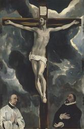 | Keywords: El Greco - Cristo en la cruz adorado por dos donantes (Musée du Louvre).jpg Artwork Creator El Greco c 1580 Oil on canvas size cm 248 180 Institution Louvre 1 26 http //cartelen louvre fr/cartelen/visite srv car_not_frame idNotice 611 langue fr Musée du Louvre Paris object history Acquis en 1908 credit line accession number R F 1713 http //www sothebys com/de/auctions/ecatalogue/2013/old-master-british-paintings-evening-l13033/lot 34 html Sotheby's not for sale only as a reference PD-old-100 Christ on the Cross adored by two Donor El Greco |