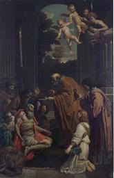 Keywords: El Viático a San Jerónimo, de Luis Álvarez Catalá (Museo de Jaén).JPG La escena que se desarrolla en el interior de una iglesia muestra a San Jerónimo que está próximo a recibir el viático postrado en el suelo y con las rodillas dobladas hacia un lado mientras es sostenido por diversos personajes siendo toda la escena contemplada por varios ángeles que se hallan en la parte superior derecha y en la parte inferior izquierda mientras que un león aparece acostado a los pies del santo Siglo XIX oil canvas Size cm 135 207 Museo de Jaén http //ceres mcu es/pages/Main object history exhibition history credit line accession number DE/BA00015 http //ceres mcu es/pages/Main PD-old-100 Luis Álvarez Catalá Uploaded with UploadWizard 19th-century paintings in the Museum of Jaén Spanish paintings of Saint Jerome