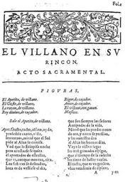 | Keywords: El villano en su rincón (auto sacramental).jpg es Portada de José de Valdivieso http //alfama sim ucm es/dioscorides/consulta_libro asp ref B18692369 idioma 0 «El villano en su rincón Auto sacramental» en Doce autos sacramentales y dos comedias divinas Toledo Juan Ruiz; a costa de Martín Vázquez de la Cruz 1622 fols 1-12 http //cisne sim ucm es/record b1869236~S6 spi Ficha catalográfica en la biblioteca digital de la Universidad Complutense de Madrid <br><br>Leyenda<br>El villano en su / rincón / Acto sacramental / Figuras / El Apetito de villano / El Gusto de villano / La razón de villana / Rey divino de cazador / Rigor de cazador / Amor de cazador / El villano con gabán / Músicos // Sale el Apetito de villano // Apet Gusto tacto olfato oído / irascible razón vista / levantaos mirad que el sol/ pide al alba la camisa / Ved que la etiópica noche/ para acostarse se quita/ el apretador de estrellas / que es aunque morena rica / Los señores se desnudan / hora es de vestirse el día / que son siempre los señores/ antípodas de la vida / Mirad que las pardas nubes / de oro y nácar se perfilan / y las avecillas dan/ al alba los buenos días / Vaya la vista a segar/ las mal granadas espigas / que al tiempo de la cosecha / las tiene de hallar vacías / El tacto que es un grosero / uvas vendimie de espinas http //alfama sim ucm es/dioscorides/temp/394064151_10 jpg Juan Ruiz impresor ; José de Valdivieso autor 1622 Spain in the 1620s 1622 books Spanish language literature Theatre of Spain El villano en su rincón PD-old-100 ImageNote 1 6 225 591 613 612 889 2 El villano en su / rincón / Acto sacramental / Figuras / El Apetito de villano / El Gusto de villano / La razón de villana / Rey divino de cazador / Rigor de cazador / Amor de cazador / El villano con gabán / Músicos // Sale el Apetito de villano // Apet Gusto tacto olfato oído / irascible razón vista / levantaos mirad que el sol/ pide al alba la camisa / Ved que la etiópica noche/ para acostarse se quita/ el apretador de estrellas / que es aunque morena rica / Los señores se desnudan / hora es de vestirse el día / que son siempre los señores/ antípodas de la vida / Mirad que las pardas nubes / de oro y nácar se perfilan / y las avecillas dan/ al alba los buenos días / Vaya la vista a segar/ las mal granadas espigas / que al tiempo de la cosecha / las tiene de hallar vacías / El tacto que es un grosero / uvas vendimie de espinas ImageNoteEnd 1 |