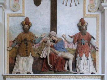 | Keywords: Elbach bei fischbachau friedhofskirche heiligen blut 015.JPG Institution Friedhofskapelle Heilig-Blut Elbach bei Fischbachau Friedhofskirche Heiligen Blut Pfarrkirche St Andreas Fischbachau im Landkreis Miesbach Deutschland<br> Chapel of the Holy Blood Church of St Andrews Elbach Fischbachau Miesbach Bavaria Germany Own Mattana/มัทนา 2009-05-09 Images by Mattana-Elbach Germany Interior of Friedhofskapelle Heilig-Blut Elbach bei Fischbachau Baroque sculptures in Upper Bavaria Reliefs of Lamentation of Christ in Germany |