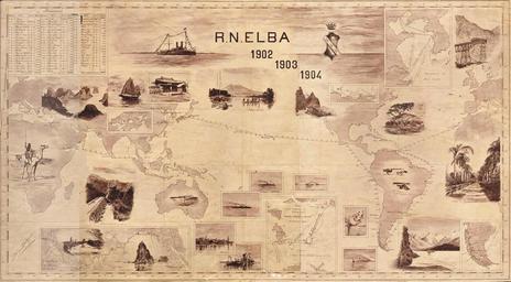 | Keywords: Elbatot.jpg Commemoration of the circumnavigation of the globe by HM Italian ship Elba in 1902 1903 and 1904 commanded by Ernesto Burzagli 1873-1944 The original picture scanned by Emiliano Burzagli belongs to the Private archive of Burzaghi family Italy Manifesto commemorativo della circumnavigazione del globo da parte della nave della Regia Marina Elba negli anni 1902 1903 e 1904 sotto il comando di Ernesto Burzagli 1873-1944 L'immagine originale scansita da Emiliano Burzagli fa parte dell'Archivio privato della famiglia Burzagli Private Archive of Burzagli Family Private Archive of Burzagli Family Own work all rights released Public domain Ernesto Burzagli Regia Marina ships Circumnavigation |