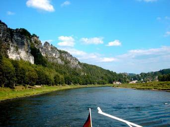 Keywords: elbe river elbe sandstone mountains rock river landscape sky blue clouds saxon switzerland saxony
