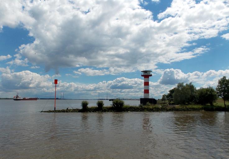Keywords: elbe river lighthouse waters water clouds nature central european power