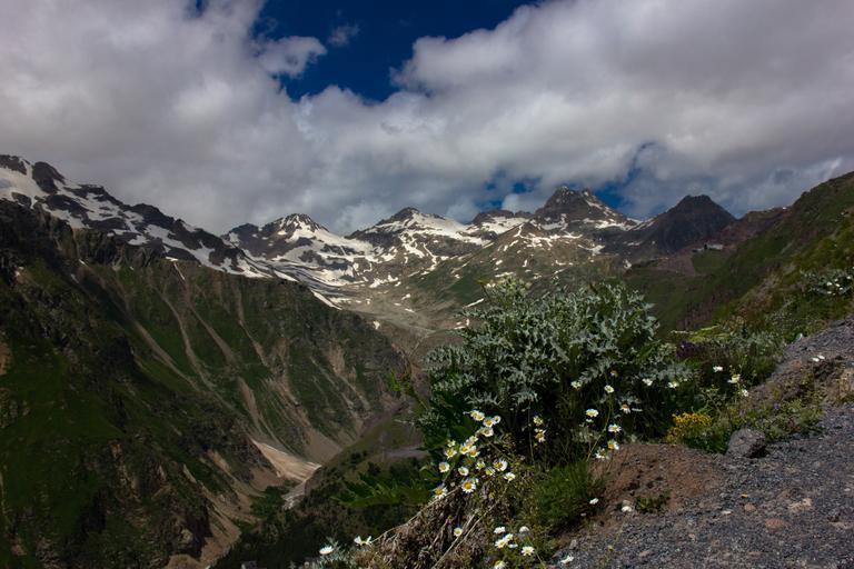 Keywords: elbrus region mountains the caucasus northern caucasus nature height mountaineering sun climbing kabardino-balkaria landscape baksan gorge clouds good weather rocks flowers