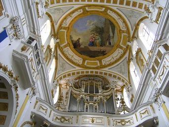 | Keywords: Elchingen Decke und Orgel.jpeg Klosterkirche Oberelchingen Deckenfresko von Januarius Zick und die Orgel The monastery church of Oberelchingen Ceiling fresco painted by Januarius Zick and the organ Photo taken by Effi Schweizer Date 2006-04-18 2006-04-18 own assumed Lily Klosterkirche Elchingen Baroque church ceilings in Swabia administrative region |