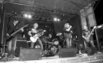 Keywords: Eldebrockb&W.jpg en Taken by me when Eldebrock was performing at Bridgefest in North Battleford own Rjl490 2010-08-28 People on stage Rock music groups from Canada