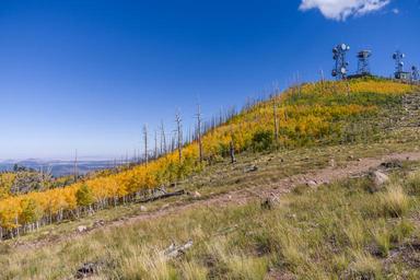 | Keywords: arizona coconino national forest coconinonationalforest elden forest service forestservice mount elden mountelden mt. elden mtelden u.s. forest service usforestservice usfs fall fall color fallcolor fall colors fallcolors fall foliage fallfoliage forest outdoor landscape hill field Fall color, September 24, 2016 on Mount Elden on Elden Lookout Road. The top of Mount Elden and the Elden Lookout tower can be accessed via Elden Lookout Road (FR 557), Elden Lookout Trail, Sunset Trail No. 23, and Heart Trail. The eastern ridgeline is turning, and the trees are peaking in the pockets and ridges below the lookout tower and on the northwestern face. Views are also excellent along Sandy Seep Trail and Elden Springs Road (FR 556). Photo by Deborah Lee Soltesz, September 24, 2016. Credit: U.S. Forest Service, Coconino National Forest. For more information, visit Coconino National Forest Fall color, September 24, 2016 on Mount Elden on Elden Lookout Road. The top of Mount Elden and the Elden Lookout tower can be accessed via Elden Lookout Road (FR 557), Elden Lookout Trail, Sunset Trail No. 23, and Heart Trail. The eastern ridgeline is turning, and the trees are peaking in the pockets and ridges below the lookout tower and on the northwestern face. Views are also excellent along Sandy Seep Trail and Elden Springs Road (FR 556). Photo by Deborah Lee Soltesz, September 24, 2016. Credit: U.S. Forest Service, Coconino National Forest. For more information, visit Coconino National Forest |