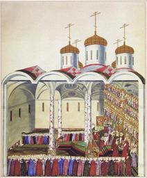 | Keywords: Election of Michael I of Russia 14.jpg 11 июля 1613 года Венчание на ца ство ит ополит Еф ем в ца ских в атах Успенского собо а ми опомазует нововенчанного ца я ихаила Федо овича http //www liveinternet ru/community/1726655/post125045648/ 17 c anonymous DEFAULTSORT PD-Art Book of election of Michael I of Russia 0711 Files uploaded by Shakko from various sources |