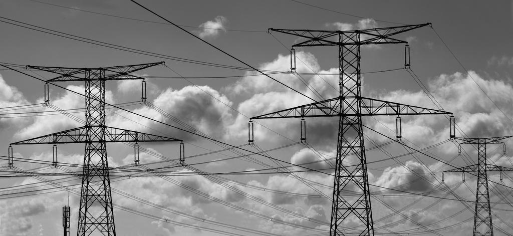 Keywords: electricity pylon son cables power line high voltage electric cables clouds metal structure