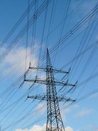 Keywords: electricity pylon strommast electricity energy clouds sky voltage steel steel building industry