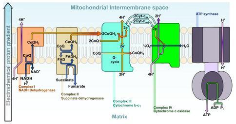 | Keywords: Electron transport chain.svg original this version has Corrected stoichiometry Cytochrome C is no longer inside the membrane Complex II is now transmembrane added electrons da Skematisk tegning af elektrontransportkæden i mitokondriets indermembran 2011-12-06 http //commons wikimedia org/wiki/File ETC_electron_transport_chain svg T-Fork cc-zero T-Fork ETC electron transport chain svg Compared to the original this version has Corrected stoichiometry Cytochrome C is no longer inside the membrane Complex II is now transmembrane added electrons Ultrastructure diagrams Electron transport chains Respiration Mitochondria |