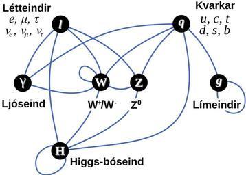 | Keywords: Elementary particle interactions (is).svg A diagram summarizing the tree-level interactions between elementary particles described in the Standard Model Vertices darkened circles represent types of particles and edges blue arcs connecting them represent interactions that can take place The organization of the diagram is as follows the top row of vertices leptons and quarks are the matter particles; the second row of vertices photon W/Z gluons are the force mediating particles; and the bottom row is the Higgs boson Elementary_particle_interactions svg 2009-03-10 03 28 UTC Elementary_particle_interactions svg en User TriTertButoxy User Stannered derivative work BiT <span class signature-talk >talk</span> Translated lables into Icelandic BiT Elementary_particle_interactions svg PD-user-en PD-user-w original upload log This image is a derivative work of the following images File Elementary_particle_interactions svg licensed with PD-user-en PD-user-w 2008-02-24T15 59 55Z Stannered 775x555 35614 Bytes <nowiki>adding W self-interaction</nowiki> 2008-02-03T17 52 30Z Stannered 775x555 37690 Bytes <nowiki>MediaWiki has no unicode TNR equivalent when will they install FreeSerif </nowiki> 2008-02-03T17 51 31Z Stannered 775x555 22110 Bytes <nowiki> A diagram summarizing the tree-level interactions between elementary particles described in the Standard Model Vertices darkened circles represent types of particles and edges blue arcs connec</nowiki> Uploaded with derivativeFX Standard Model physics Icelandic language Higgs boson |