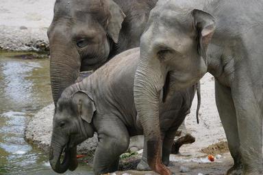 Keywords: elephant asian elephants young animal water hole drink pachyderm mammal elephas maximus
