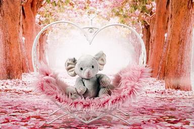 Keywords: elephant sitting horizontal the mascot plush colorful gray studio joy fun heart entertainment cheerful the background