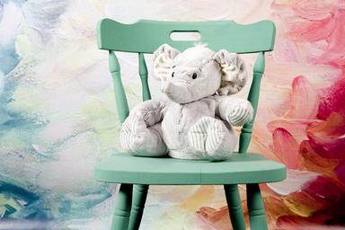 Keywords: elephant sitting plush the mascot toy gray studio fun colorful chair colors