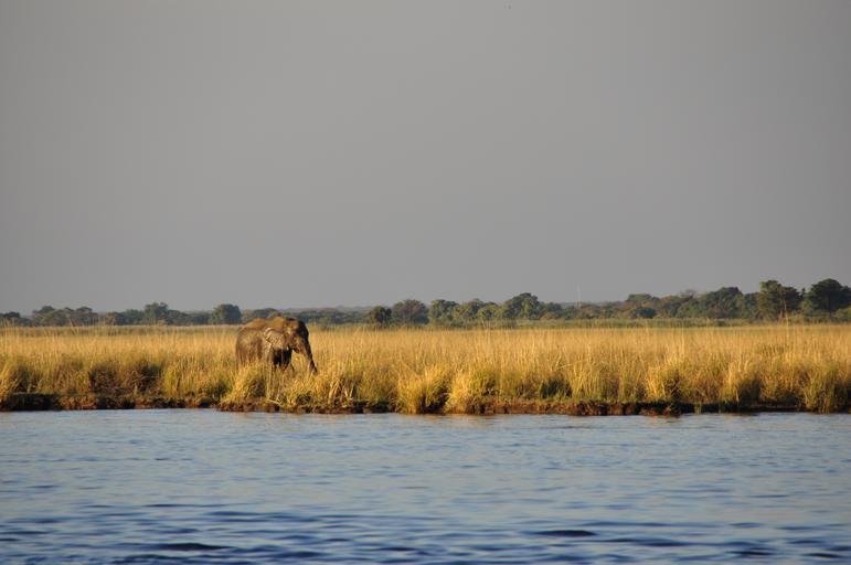 Keywords: elephant wasserelefant hiking lonely river water chobe botswana africa animal wild safari grey yellow blue