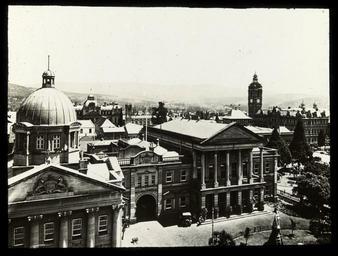 | Keywords: Elevated view, government or municipal buildings and town square.jpg Looking down on cluster of government buildings with view of coat of arms on the main building In the foreground there is a partial view of a square with statue; car parked in front of the main building with view of adjoining gardens possibly in Cape Town or Pretoria IT IS IN PIETERMARITZBURG circa 1920 “ ca 1930 1 lantern slide glass Size cm 8 1 8 1 Institution State Library of Victoria object history exhibition history credit line Photographer unknown Undated but circa 1920 “1930 Title taken from provenance file accession number H92 339/57 place of creation SLVIC-digitalimage 95355 H92 339/57 This work is out of copyright No copyright restrictions apply <br>http //www slv vic gov au/about-us/plans-policies/copyright-library-items/do-i-need-librarys-permission-well-copyright-owners- Copying digitised material from the Library's collections You may find digital copies of items from the Library's collections such as photographs or recorded interviews on the Library's website and online catalogue Where this material is out of copyright it may be freely used provided the Library and the creator are acknowledged; however the Library does not endorse any inappropriate or derogatory use Custom license marker 2014 08 07 PD-Australia PD-US Uploaded with UploadWizard Lantern slides of South Africa South Africa in the 1920s Reliefs of British coats of arms in foreign countries KwaZulu-Natal Legislature Pietermaritzburg Town Hall History of Pietermaritzburg |