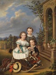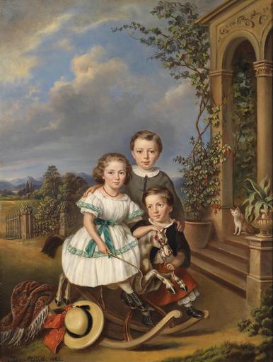 | Keywords: Elisabeth Modell Porträts dreier Kinder vor einem Gartenpavillon.jpg Porträts dreier Kinder vor einem Gartenpavillon Elise Modell 1862 signature/date oil on canvas 65 x 49 cm http //www dorotheum com 1862 Creator Elisabeth Modell PD-old-100 Images from Dorotheum Elisabeth Modell 1862 paintings Children in art Rocking horses Portraits with toy horses | ||||