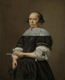 | Keywords: Elisabeth van Kessel (1640-1717). Echtgenote van Willem Jacobsz Baert Rijksmuseum SK-A-1340.jpeg nl Portret van Elisabeth van Kessel echtgenote van Willem Jacobsz Baert Ten halven lijve naar links een waaier in de linkerhand Pendant van SK-A-1339 drager Height cm 109 drager Width cm 90 exhibition history 2012-2017 Langdurig bruikleen Stedelijk Museum Alkmaar - II Alkmaar 2011-2011 Dutch Girls Amsterdam Institution Rijksmuseum Technique oil canvas object history Acquisition 1886 object type Potential derivatives exist check http //commons wikimedia org/w/index php search Rijksmuseum+SK-A-1340 this search PD-US PD-old-100 Data and photography rights All data and all images made available through the API are either in the public domain or are subject to a CC0 license https //www rijksmuseum nl/en/api/terms-and-conditions-of-use cc-zero place of creation http //www rijksmuseum nl/collectie/SK-A-1340 Elisabeth van Kessel 1640-1717 Echtgenote van Willem Jacobsz Baert Q17324024 Uploaded with GWToolset Elisabeth van Kessel 1640-1717 Echtgenote van Willem Jacobsz Baert Rijksmuseum SK-A-1340 http //www rijksmuseum nl/media/assets/SK-A-1340 Paintings by Caesar van Everdingen in the Rijksmuseum Amsterdam 1671 Portrait02 Caesar van Everdingen 1671 Portrait02 1670s dresses 1671 oil on canvas paintings Portrait 1671 portrait paintings 1640 births 1717 deaths 18th-century oil on canvas paintings in the Netherlands 17th-century oil portraits of standing women at three-quarter length 17th-century portrait paintings in the Rijksmuseum Amsterdam Female hair fashion in art Females with black dresses in art Females with earrings in art Lace collars in art People of the Northern Netherlands before 1830 Kessel Portrait paintings of women of the Netherlands Portrait paintings with brown background Portraits with fans Images uploaded by Fæ Images from the Rijksmuseum Paintings by Caesar van Everdingen in the Rijksmuseum Amsterdam Caesar van Everdingen |