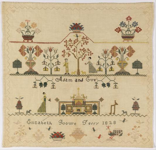 | Keywords: Elizabeth Rowe Terry, American - Sampler - Google Art Project.jpg American 4091368 Elizabeth Rowe Terry /collection/cooper-hewitt-national-design-museum/artwork/sampler-elizabeth-rowe-terry-american/6717268/ 75169 Elizabeth Rowe Terry American /artist/elizabeth-rowe-terry/6826643/ 6826643 /collection/cooper-hewitt-national-design-museum/ Cooper-Hewitt National Design Museum 3644669 http //www cooperhewitt org/ /collection/cooper-hewitt-national-design-museum/artwork/sampler-elizabeth-rowe-terry-american/6717268/ 1828 1828 Medium silk embroidery on linen foundationTechnique embroidered in cross and eyelet stitches on plain weave foundation By 1941 Mrs Henry E Coe Eva Johnston Coe 1941 Museum for the Arts of Decoration of the Cooper Union 390 6717268 False 1828 1941-69-107 http //collection cooperhewitt org/view/objects/asitem/id/75169 Bequest of Mrs Henry E Coe Sampler 1820 1830 w410 x h390 cm 1828 False 1 04065040650407 Object sampler-elizabeth-rowe-terry-american Sampler s 410 Ethel Stanwood Bolton and Eva Johnston Coe American Samplers Boston The Massachusetts Society of the Colonial Dames of America 1921 229 H x W 39 x 41 cm 15 3/8 x 16 1/8 in New York New York Museum of Early American Folk Arts Collector's Choice Part II May 12 to July 5 1970 Elizabeth Rowe Terry 1828 Medium silk embroidery on linen foundationTechnique embroidered in cross and eyelet stitches on plain weave foundation By 1941 Mrs Henry E Coe Eva Johnston Coe 1941 Museum for the Arts of Decoration of the Cooper Union special url_id NwE1g3naOOzHhg PD-old-100 Google Art Project works by Elizabeth Rowe Terry Textiles in the Cooper “Hewitt Smithsonian Design Museum 1820s samplers Google Art Project works in Cooper-Hewitt Smithsonian Design Museum 1828 works |