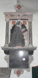 | Keywords: ElizabethPeryamHeantonPunchardon.JPG 1107743 Mural monument to Elizabeth Peryam 1571-1635 wife of Sir Robert Bassett d 1641 Heanton Punchardon Church Devon A mural monument to Elizabeth Peryam 1571 “1635 heiress of Little Fulford and wife of Sir Robert Bassett 1574 “1641 of Heanton Punchardon North Devon MP for Plymouth in 1593 is situated on the east wall of the Basset Chapel in Heanton Punchardon Church She was one of the four daughters and co-heiresses of Sir William Peryam 1534 “1604 Lord Chief Baron of the Exchequer by his second wife Anne Parker daughter of John Parker of North Molton Devon ancestor of the Earls of Morley of Saltram House near Plymouth She bore her husband two sons and four daughters <ref>History of Parliament biography of Sir Robert Bassett MP</ref> amongst whom was Colonel Arthur Basset MP who erected the monument It is inscribed in Latin as follows Memoriae Sacrum Dominae Elizabethae Bassett uxori Roberti Bassett militis clarissima stirpe oriundi filiae et cohaeredi Gulielmi Peryam militis Schaccarii Regii Baronis primarii Judicic integerrimi et religiosissimi piae prudenti justae patienti modestae castae temperanti constanti hospitali misericordi beneficae pauperum matri et medicae suae familiae conservatrici Arthurus Bassett armiger filius eius primogenit us debitae gratitudinis et observantiae ergo H oc M onumentum M atri M aerens P osuit Anno Domini 1635 aetatis suae 64 ad Dominum remeaunt <br> Should monuments goe by merit then surely thine <br> With pretious stone and orient pearle should shine <br> But since thy world of worth ye world doth know <br> This marble stone may serve thy name to show <br> Many are the afflictions of the righteous but the Lord delivereth him out of them all Psal 34 19 <br> Ita in fornacem prodiit aurum Which may be translated literally into English as Sacred to the memory of Lady Elizabeth Bassett wife of Robert Bassett knight arisen from a famous stock daughter and co-heiress of William Peryam knight Lord Chief Justice of the Royal Treasury he was most impartial and duty-bound she was pious prudent just long-suffering modest chaste temperant constant hospitable compassionate kind a mother and healer of the poor a preserver of her own family Arthur Bassett Esquire her sorrowing first-born son of a duty of gratitude and respect therefore placed this monument to his mother in the year of Our Lord 1635 of her age 64 may she remain to the Lord Thus does gold come forth into an oven own photo Monument 1635; photo May 2012 own photo St Augustine Heanton Punchardon Wall mounted church monuments in Devon Basset arms Peryam arms |
