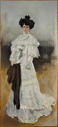 | Keywords: Elizaveta Alexeevna Krasilshikova by V.Serov (1906, Krasnodar).jpg СЕРОВ В А ПОРТРЕТ Елизаветы Алексеевны КРАСИЛЬЩИКОВОЙ 1906 223х100 К аснода ский к аевой художественный музей им Ф А Коваленко Ж-253 По т ет Елизаветы Алексеевны К асильщиковой не относится к числу абот к кото ым было п иковано п истальное внимание исследователей Последний аз он экспони овался в оскве в 1914 году на посме тной выставке Валентина Александ овича Се ова есколько лет находился в частном соб ании у наследников откуда попал в Г Ф а в 1925 году был пе едан в коллекцию К аснода ского к аевого художественного музея имени А В Лунача ского О художественных достоинствах по т ета можно судить лишь по едким восп оизведениям Он естественно вписываясь в к уг поздних п оизведений Се ова объединенных новыми художественными задачами п едставляет несомненный инте ес для исследователей тво чества масте а Елизавета Алексеевна К асильщикова 1879 -1959 - п едставительница богатой московской купеческой семьи владевшая хлопчатобумажной мануфакту ой Това ищество Анны К асильщиковой с сыновьями в Кост омской губе нии унаследовала после сме ти мужа ог омное состояние Она была личностью своен авной властной но пользующейся г омадным успехом в обществе Такая модель как нельзя лучше подходила для создания светского па адного по т ета По т ет Е А К асильщиковой - одна из самых больших заказных абот Се ова Фо матом и самой постановкой модели он напоминает знаменитые по т еты А о озова Ф И Шаляпина Е моловой Фигу а К асильщиковой дана в ост к упным планом Особое внимание уделяется позе и жесту В т актовке об аза чувствуется п етензия модели на светскость апломб ев опеизи ованного московского купечества начала XX века Художник по-видимому был асположен к модели делая в по т ете акцент на ее внешнюю п ивлекательность женственность и оча ование Решая большую живописную задачу Се ов изоб ажает конк етный ха акте По т ет Е А К асильщиковой - одно из немногих п оизведений В А Се ова написанных в этом жан е в технике пастели атово-ба хатистой пыльцой он пе едает и живые к аски лица и невесомый газ платья и п онзительные иск ы б иллиантов и глубину че ного пятна шали Пове хность холста будто соткана из жемчужно-се ых озовых зеленоватых золотистых белых и че ных азнофакту ных нитей Используя оттенки изысканных тонов Се ов создал богатейшую коло истическую гамму по т ета www art-catalog ru http //virtualrm spb ru/ru/resources/galleries/serov/krasnodar Female portraits by Valentin Serov K Files uploaded by Shakko from various sources 1905 portrait paintings 1900s portraits of Russia female House of Sheremetev PD-old |