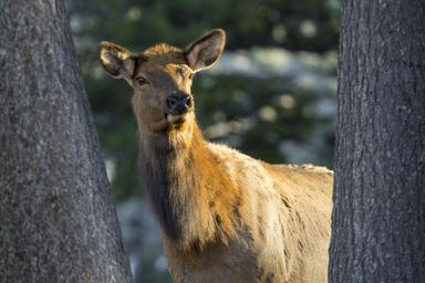 Keywords: elk cow female portrait forest wildlife scenic wild fur eyes nature face looking head