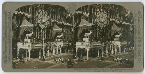 | Keywords: stereographs philadelphia decorations competitions businesses strawbridge & clothier strawbridgeclothier elks' convention elksconvention View of Strawbridge & Clothier, decorated for the Elks' Convention, held July 15-21, 1907 in Philadelphia. Strings of lights, flower garlands, potted plants, bunting, elk statues and American flags adorn the building. A massive sign announces "welcome BPOE." Pedestrians travel on the sidewalk and street adjacent to the building. Accession number: P.2011.47.1545 View of Strawbridge & Clothier, decorated for the Elks' Convention, held July 15-21, 1907 in Philadelphia. Strings of lights, flower garlands, potted plants, bunting, elk statues and American flags adorn the building. A massive sign announces "welcome BPOE." Pedestrians travel on the sidewalk and street adjacent to the building. Accession number: P.2011.47.1545 |