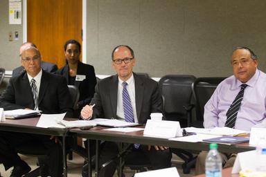 | Keywords: Elkton Richardson, Thomas Perez and Darrell Waldron, 2014.jpg Secretary Perez with Darrell Waldron right the newly appointed chairperson of the Indian and Native American Advisory Council and Vice Chair Elkton Richardson left listen to another council member 29 May 2014 -Washington DC - Secretary of Labor Thomas Perez dropped by the Native American Employment Training Council meeting to give brief remarks ETA Assistant Secretary Portia Wu gave remarks earlier in the program Council members on hand for the meeting were Region 1 Mr Darrell Waldron Executive Director Rhode Island Indian Council Inc Providence Rhode Island And Chairperson of Indian and Native American Advisory Council; Region 3 Mr Elkton Richardson WIA Program Director North Carolina Commission on Indian Affairs Raleigh North Carolina And Vice Chairperson of Indian and Native American Advisory Council; Region 3 Mr James Hardin Executive Director Lumbee Regional Development Association Inc Pembroke North Carolina; Region 4 Dr Rodney Stapp MD Executive Director Urban Inter-Tribal Center of Texas Dallas Texas; Region 5 Ms Jessica James MA WIA Director Indian Center Inc Lincoln Nebraska; Region 5 Ms Christine Molle Executive Director American Indian Council North Kansas City Missouri; Region 6 Ms Lorenda T Sanchez Executive Director California Indian Manpower Consortium Inc Sacramento California; Region 6 Ms Kristen English Chief Operating Officer Cook Inlet Tribal Council Anchorage Alaska; Ms Winona Whitman Director Department of Employment and Training Alu Like Honolulu Hawaii; Mr Jacob Bernal Executive Director American Indian Association of Tucson Tucson Arizona; Dr David Yarlott President Little Big Horn College Crow Agency Montana; Dr David Gipp President United Tribes Technical College Bismarck North Dakota Official Department of Labor Photograph This official Department of Labor photograph is being made available only for publication by news organizations and/or for personal use printing by the subject s of the photograph The photograph may not be manipulated in any way and may not be used in commercial or political materials advertisements emails products and/or promotions that in any way suggest approval or endorsement of the Secretary or the Department of Labor Photo Credit Department of Labor https //www flickr com/photos/usdol/14320403673/ L-14-05-29-A 101 2014-05-29 10 43 https //www flickr com/people/52862363 N07 US Department of Labor PD-USGov US Department of Labor https //flickr com/photos/52862363 N07/14320403673 2016-09-06 06 31 26 United States Government Work Elkton Richardson Thomas Perez in 2014 Darrell Waldron |