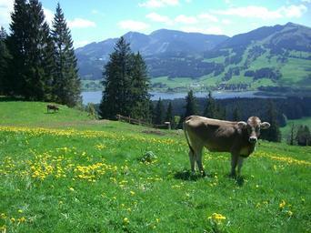 Keywords: ellegghoehe gruentensee alpine pointed edelsberg cow muh meadow allgäu mountains relaxation nature landscape
