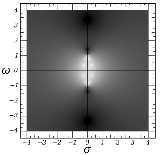 | Keywords: Elliptic Filter s-Plane Response (8th Order).svg elliptic filter Values less than 0 0001 are black; greater than 10 are in white 1 05 0 5 and <sub>0</sub> 1 own Inductiveload 2009-01-30 Mathematica Code <pre><nowiki> xp2xi_ Module g num den g Sqrt4 xi 2 + 4 xi 2 xi 2 - 1 2/3 ; num 2 xi 2 Sqrtg; den Sqrt8 xi 2 xi 2 + 1 + 12 g xi 2 - g 3 - Sqrtg 3; num/den; xz2xi_ xi 2/xp2xi; txi_ Sqrt1 - 1/xi 2; Use particular values for low-order functions r1xi_ x_ x; r2xi_ x_ txi + 1 x 2 - 1 / txi - 1 x 2 + 1 ; r3xi_ x_ x 1 - xp2xi x 2 - xz2xi / 1 - xz2xi x 2 - xp2xi ; Use nesting property for higher-degree functions r4xi_ x_ r2r2xi xi r2xi x; r8xi_ x_ r4r2xi xi r2xi x; ellgainxi_ w_ w0_ ep_ 1/Sqrt1 + ep 2 r8xi w/w0 2; DensityPlot w0 1; ep 0 5; xi 1 05; min 0 0001; max 10; LogAbs ellgainxi sig + I w w0 I ep sig -4 4 w -4 4 PlotRange -> Logmin Logmax PlotPoints -> 100 ColorFunction -> GrayLevel ClippingStyle -> Black White </nowiki></pre> Elliptic filters Pole-zero plots |