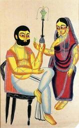 | Keywords: Elokeshi is Offering Betel Leaf to the Mahant.jpg en This picture however depicts the scandalous Tarakeshwar Affair of 1873 which concerned the forbidden relationship between a Brahmin priest and Elokeshi the young wife of the Bengali government employee Nabin Chandra Banerjee who took his revenge by severing his wife ™s head with a fish knife Here Elokeshi is shown offering betel leaf an evergreen leaf that is chewed as a stimulant to the priest who is holding a huqqa a hubble-bubble or smoking pipe while seated on a chair The priest has the appearance of a 19th-century Bengali Babu “ a Hindu gentleman who had adopted aspects of European culture “ or an English dandy while Elokeshi is portrayed as a courtesan ~ 1875 http //collections vam ac uk/item/O71297/painting-elokeshi-is-offering-betel-leaf/ author PD-Art Uploaded with UploadWizard Tarakeswar affair Hookahs in art |