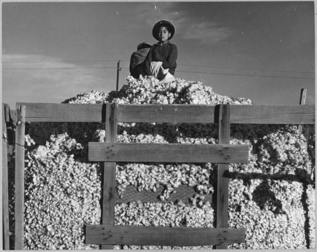 | Keywords: Eloy District, Pinal County, Arizona. Migratory cotton pickers dump their sacks into the field wagon . . . - NARA - 522256.jpg Scope and content Full caption reads as follows Eloy District Pinal County Arizona Migratory cotton pickers dump their sacks into the field wagon Wages - 75 per hundred pounds Late afternoon General notes 522256 Local identifier 83-G-44087 Department of Agriculture Bureau of Agricultural Economics Division of Economic Information ca 1922 - ca 1953 NARA-Author Lange Dorothea 1895-1965 Photographer 1372774 <br /> Still Picture Records Section Special Media Archives Services Division NWCS-S National Archives at College Park 8601 Adelphi Road College Park MD 20740-6001 11/1940 Record group Record Group 83 Records of the Bureau of Agricultural Economics 1876 - 1959 Record group ARC 412 Photographic Prints Documenting Programs and Activities of the Bureau of Agricultural Economics and Predecessor Agencies compiled ca 1922 - ca 1947 documenting the period ca 1911 - ca 1947 Series ARC 521048 File unit File unit ARC Variant control numbers NAIL Control Number NWDNS-83-G-44087 Other versions <gallery> File Eloy_District _Pinal_County _Arizona _Migratory_cotton_pickers_dump_their_sacks_into_the_field_wagon_ _ _ _-_NARA_-_522256 tif tif File Eloy_District _Pinal_County _Arizona _Migratory_cotton_pickers_dump_their_sacks_into_the_field_wagon_ _ _ _-_NARA_-_522256 jpg jpg </gallery> NARA-cooperation PD-USGov Dorothea Lange Eloy Arizona 1940 in Arizona November 1940 in the United States Cotton sacks Wagons in the United States Agricultural transport Agricultural workers Men at work in the United States Wages in the United States |